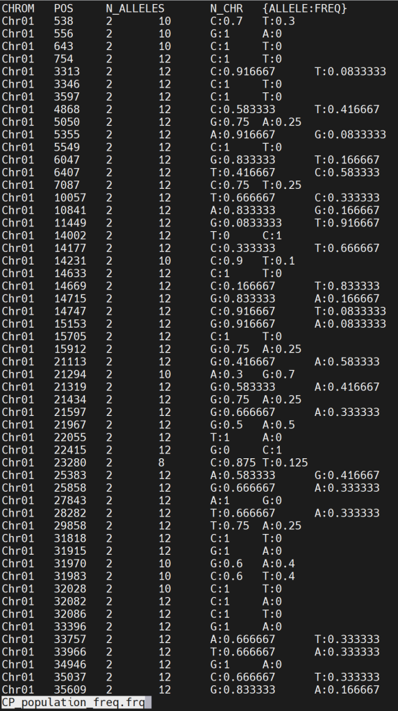 # 使用vcftools计算等位基因频率